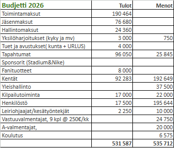 Aikuispelaajien jäsenmaksu on 40 € vuodessa ja se laskutetaan eräpäivällä 15.1.2026.